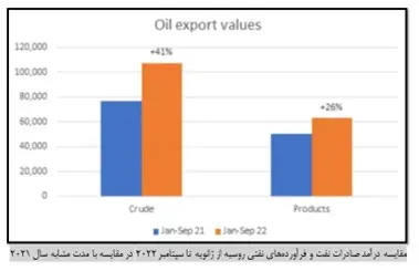برخلاف انتظار، تحریم‌ها علیه روسیه تا پیش از دسامبر سال ۲۰۲۲ نتوانست درآمد نفتی روسیه را کاهش دهد. افزایش قیمت نفت و افزایش صادرات به کشورهایی مانند چین و هند باعث شد تا کاهش صادرات به برخی کشورهای غربی تا حدی جبران شود. چنانکه براساس آمار منتشر شده تا ماه آگوست انتظار این است که درآمد روسیه از صادرات انرژی در سال ۲۰۲۲ نسبت به سال ۲۰۲۱، به میزان ۳۸ درصد رشد داشته باشد[3].