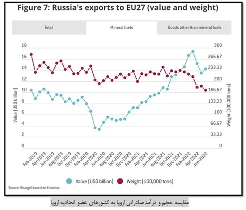 این افزایش درآمد بیش از آنکه ناش از افزایش صادرات باشد، ناشی از افزایش قیمت انرژی است. چنانکه آمارها نشان می‌دهد علی‌رغم کاهش حجم صادرات سوخت فسیلی روسیه به اروپا، درآمد ناشی از این صادرات افزایش پیدا کرده است[4]. از طرف دیگر بالا رفتن قیمت انرژی و همچنین اعمال تحریم بر شرکت‌های بیمه‌ای و کشتیرانی غربی که نفت روسیه را جابه‌جا می‌کنند، می‌تواند اقتصاد کشورهای غرب و اروپا را با رکود و تورم رو به رو کند و هزینه تحریم علیه روسیه و درگیری با این کشور را به خصوص در زمستان سال ۲۰۲۳ میلادی بسیار بالا ببرد.
