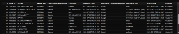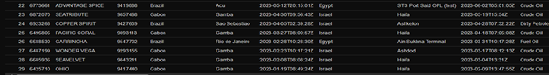 علاوه بر این تامینکنندگان اصلی منطقهای، رژیم صهیونیستی همچنین از مناطق دورتر، به ویژه گابن و برزیل، نفت خام وارد میکند که به نظر میرسد جریان واردات از گابن تحت تأثیر درگیری در غزه قرار نگرفته باشد، زیرا پنج محموله نفت خام از 13 اکتبر 2023، تاریخ اولین حمله ارتش رژیم صهیونیستی، وارد شده است.