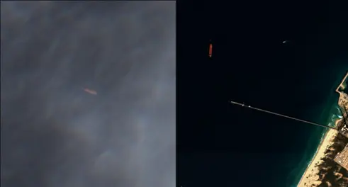همانطور که در تصاویر ماهواره ای Sentinel-2 نشان داده شده است، در بین این تاریخها، به نظر میرسد نفتکش در پایانه شرکت خط لوله اروپا آسیا (EAPC)[4] در جنوب اشکلون لنگر انداخته است. خطوط لوله پالایشگاههای حیفا و اشدود از آنجا تامین میشود.