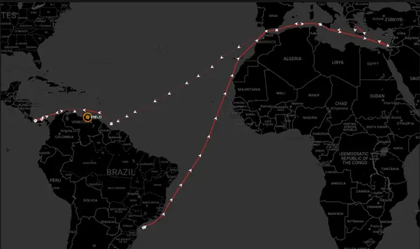 آخرین پینگ ثبت شده نفتکش فروید قبل از رسیدن به سرزمینهای اشغالی، در ساعت 07:57 صبح در 21 دسامبر 2023، در عرض جغرافیایی 31.9886 و طول جغرافیایی 34.1987 بود که با سرعت 12.6 گره به سمت سرزمینهای اشغالی در حرکت بود. پینگ بعدی آن در ساعت 12:22 بعد از ظهر 27 دسامبر 2023 بود که در جهت مخالف با سرعت 9.4 گره دریایی درحال حرکت بود. مدت کوتاهی پس از این، سطح فرورفتگی در آب آن به صورت کاهش به 9.3 متر ثبت میشود که نشان میدهد کشتی بار را تخلیه کرده است.